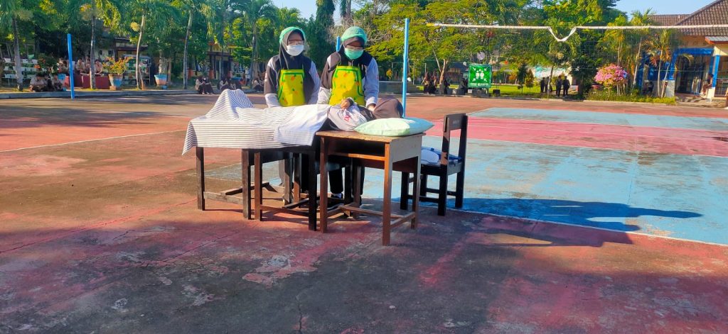 Salah satu bagian menarik dari pengenalan PMR adalah demonstrasi pertolongan pertama. Para anggota PMR menunjukkan cara-cara menangani luka ringan, cara membalut, dan teknik dasar CPR (Cardiopulmonary Resuscitation). Demonstrasi ini sangat interaktif karena melibatkan beberapa siswa sebagai sukarelawan untuk praktik langsung, sehingga mereka bisa merasakan dan memahami pentingnya keterampilan pertolongan pertama dalam kehidupan sehari-hari.